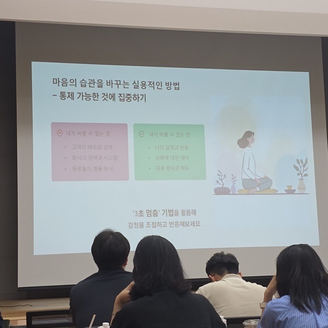 회복탄력성 강의는 회사생활의 어려움을 극복하는 힘을 회복탄력성과 긍정 마인드 강의는 삶의 어려움을 극복하는 힘을 얻는 소중한 시간이었습니다. 긍정적인 사고방식이 얼마나 중요한지 깨달았고, 좌절에 굴복하지 않고 다시 일어서는 회복탄력성을 키우는 구체적인 방법(감사습관 기록, 3초의 멈춤등)들을 배울 수 있어 유익했습니다. 앞으로 제 삶에 긍정과 활력을 불어넣는 좋은 계기가 될 것 같습니다. 💪