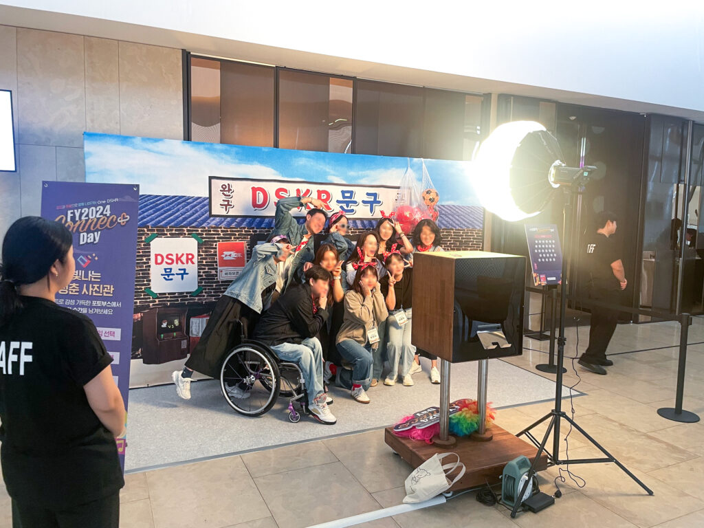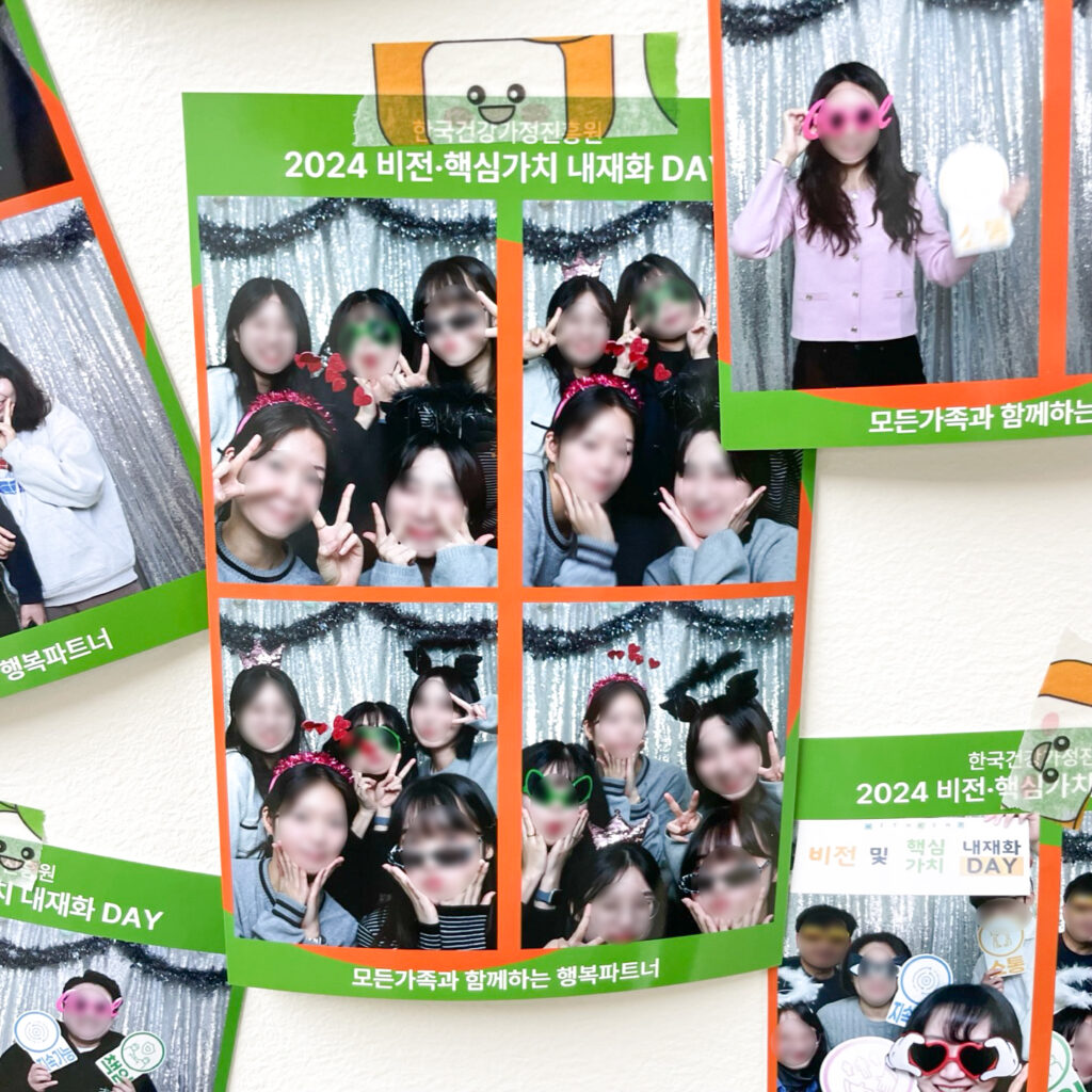 기업 행사를 보다 특별하고 기억에 남는 순간으로 만들기 위해, 이 포토부스를 기획하였습니다. 단순한 사진 촬영이 아니라, 팀원 간의 유대와 교류를 기록하고, 브랜드 아이덴티티를 행사 현장에 녹이는 것을 목표로 합니다. 기본 제공되는 장비의 퀄리티에 집중하여 디자인 커스텀, 지속광 조명, 서비스 제공 백월, 소품 등의 기본 구성만으로도 행사를 완성하실 수 있습니다. 행사 전, 기업 맞춤 디자인 커스텀을 제작하고, DSLR과 지속광 조명, 다양한 소품과 백월을 세팅하여 현장에 설치합니다. 행사에 맞춘 맞춤 피켓, 백월 등 소품 제작을 통해 행사 전반의 통일성을 살려, 팀워크와 소통을 촉진합니다.참가자는 자유롭게 포즈를 취하며 촬영하고, 현장에서 즉시 인화 또는 디지털 파일로 공유할 수 있어 팀워크와 즐거움을 동시에 경험할 수 있습니다. 이를 통해 단순한 행사 참여를 넘어, 기업문화 강화와 팀 빌딩이라는 목표를 자연스럽게 달성합니다.