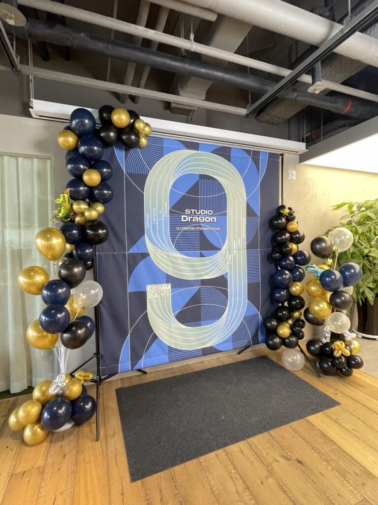 현수막의 모서리, 스탠드 풍선 2대가 제공되며 기업의 컬러에 맞추어 제작이 가능합니다.