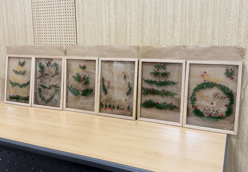 안내 → 배치 팁 → 고정 → 레터링(사전 부착) → 전시 팁 순서로 진행되어 초보도 60분이면 충분해요. 문구는 연도/메시지 등, 원하시는 내용으로 D-7까지 보내주시면 사전 제작해 드립니다. (영문 추천, 한글은 긴 문장에 경우 제작이 어려워 진행 전 문의해 주세요). 완성작은 데스크와 로비 어디에 걸어 두어도 은은히 빛나며, 연말의 따뜻함을 오래 품어줍니다.