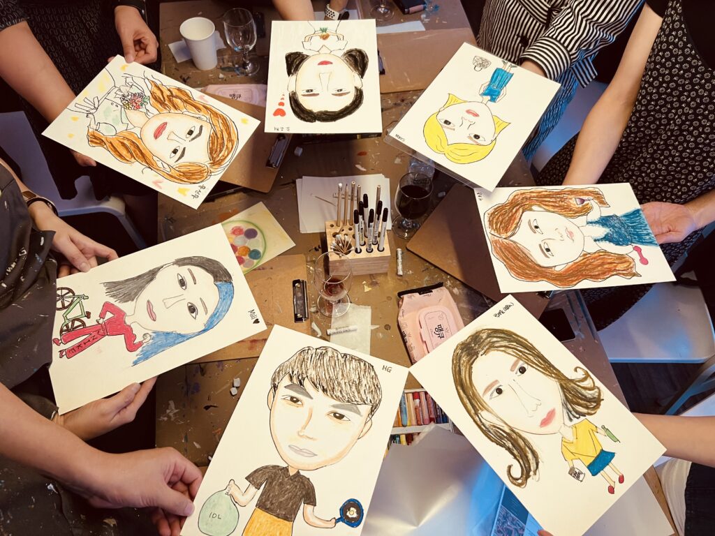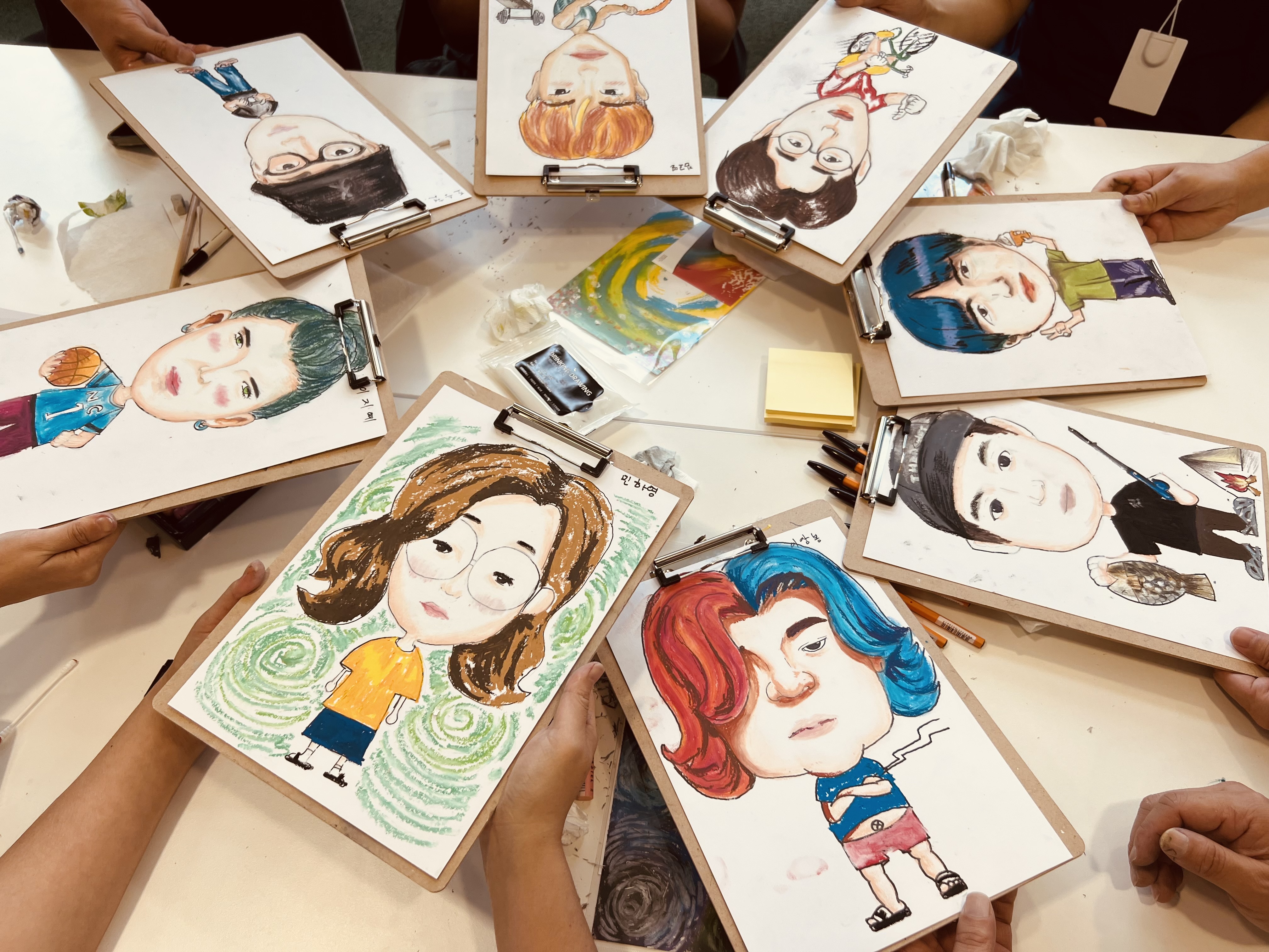 팀원들과 실내 프로그램으로 재미있는 강의를 찾다가 발견했어요! 1:1로 얼굴을 그렸다면 너무 부담일 것 같았는데 다행히 팀원들끼리 함께 그리는 릴레이 드로잉이여서 부담도 덜하고 그리는 내내 너무 웃어서 배가 아팠어요ㅎㅎ 즐거운 추억 만들어주셔서 감사합니다!