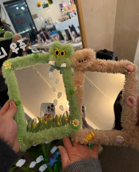강사의 안내에 따라 단계별로 동물 얼굴과 거울 프레임을 모루로 디자인하고 고정한 뒤, 원하는 악세서리를 선택해 자유롭게 꾸미며 완성합니다.