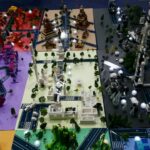 도로 건설, 나무 및 조경 구성, 야간 조명등 인테리어 제작