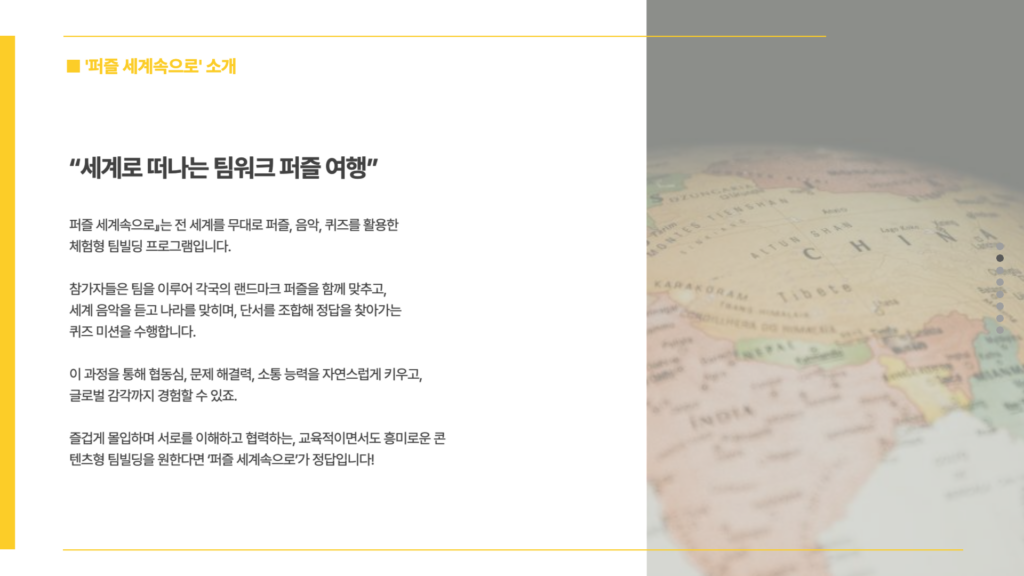 지구를 담은 팀빌딩, 퍼즐 세계속으로를 소개합니다.