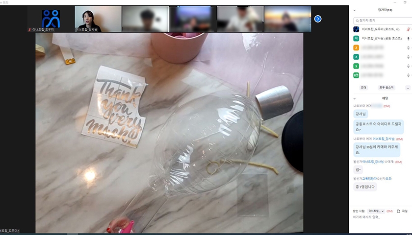 예쁜 꽃을 풍선 속에 담아 만들어보는 꽃풍선 만들기 워크샵입니다. 풍선에 하고 싶은 말이나 원하는 메시지를 담아 새겨볼 수 있어 신입사원교육이나 승진자 교육에서는 앞으로의 목표에 관한 다짐 메세지로, 또 연말이나 사내행사에서는 힐링 메세지를 담아 만들기 적합한 워크샵인데요. 다 만든 꽃풍선은 나에게 셀프 선물해보거나 지인들에게 선물해보면 어떨까요?
