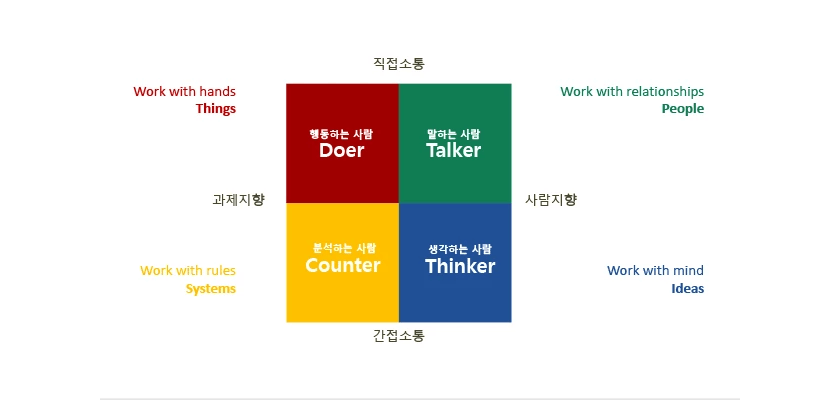 인간관계를 맺는 방식(직접 소통/사람 지향/간접 소통/과제 지향)