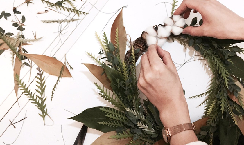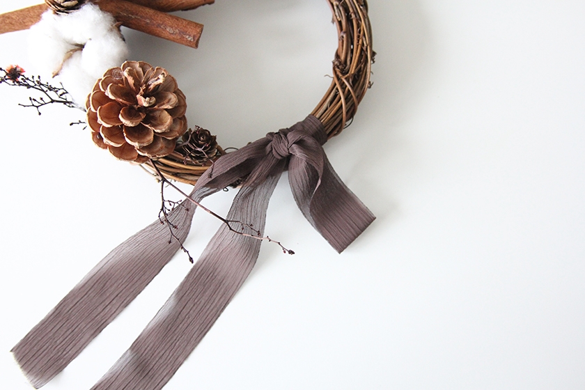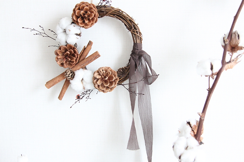가을 겨울에 특히 잘 어울리는 따듯하고 감성 있는 무드의 솔방울 목화 리스 만들기 워크샵!