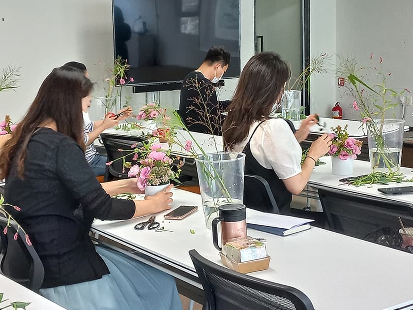 예쁜 꽃들로 꽂꽂이를 하면서 업무에 대한 부담은 내려놓고 편안한 마음으로 재충전의 시간을 가져요.