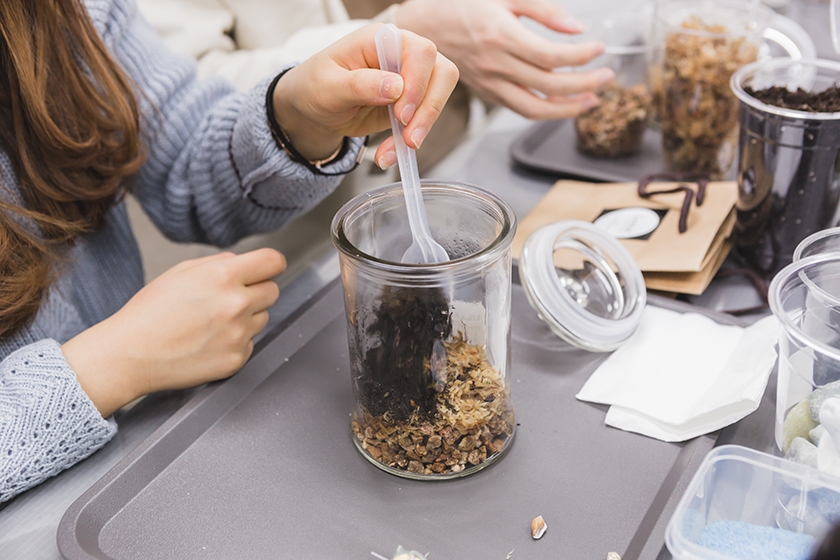테라리움이란? 땅을 뜻하는 ‘terra’와 방을 의미하는 ‘arium’의 합성어로, 투명한 용기 안에 작은 식물을 재배하는 것을 말합니다. 물과 산소의 순환이 용기 안에서 자체적으로 이루어지기 때문에 특별한 관리가 없어도 쉽고 예쁘게 식물을 키울 수 있는 테라리움을 통해 나만의 작은 이끼 정원을 만들어보세요. 바쁘게 돌아가는 일상과 직장 생활 속 마음 둘 곳 없는 요즘, 지친 마음을 따뜻하게 해줄 나만의 작은 정원이 되어 줄거예요. 작고 성장속도가 느린 이끼지만, 강한 생명력을 가지고 있어 관리하기도 쉽고 키우기도 편하답니다. 집, 회사, 가게 인테리어 소품으로도 활용 만점인 이끼 테라리움! 흙과 식물을 직접 만지며 동료들과 그 동안 나누지 못했던 대화를 하다보면 일하면서 발견하지 못했던 숨겨진 모습을 발견하고 더욱 더 가까워 질 수 있을 거예요.