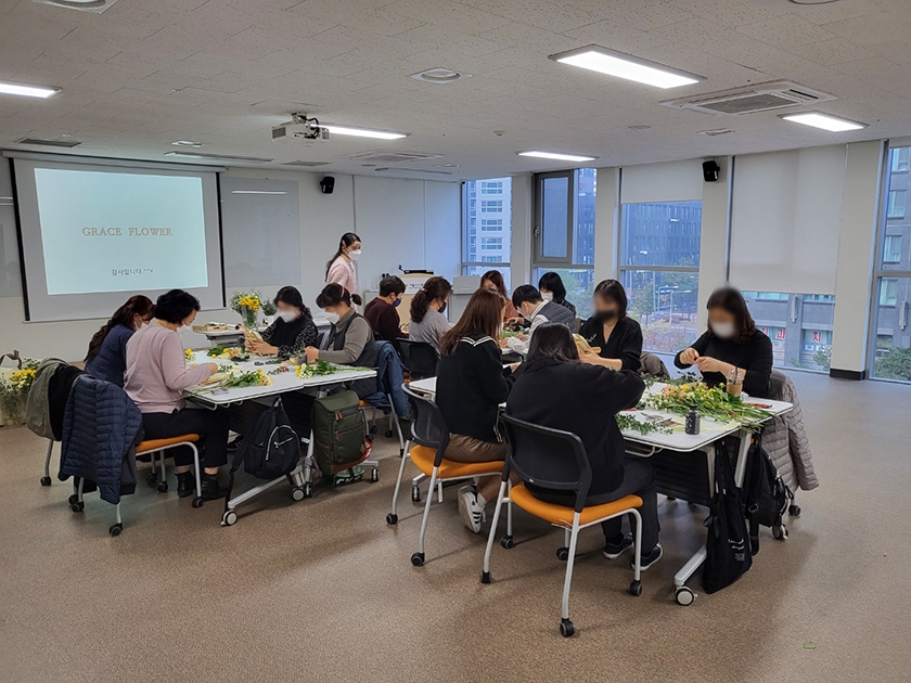 미니 화환 시연을 위한 강사 테이블이 필요합니다.