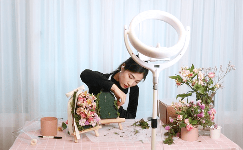 꽃 한 송이, 한 송이를 다듬고 꽂다 보면 어느새 내 손길이 담긴 예쁜 화환이 완성돼요!