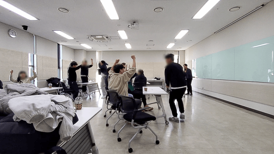 조별 테이블 세팅을 '2~5인 1조' 5개 팀 이하로 구성해 주세요.
