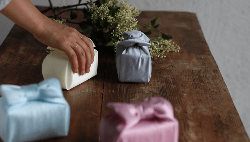 우리나라 전통소재인 보자기를 이용하여 다양한 상품을 포장해보는 클래스