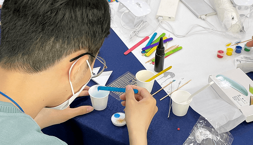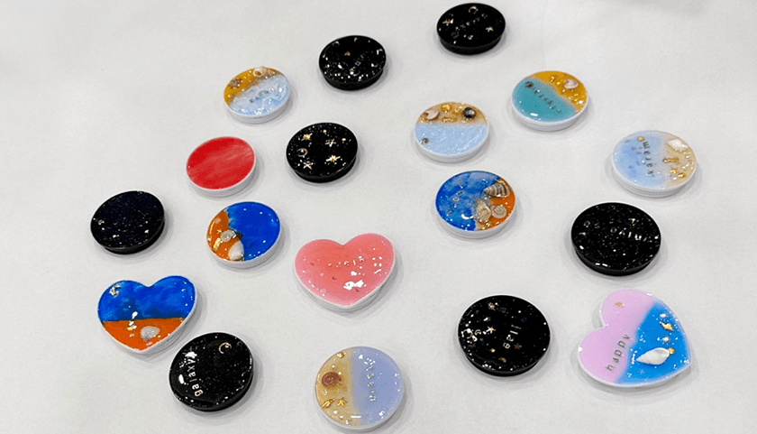 그립톡 3종,레진용액,아크릴 물감,바다파츠,우주파츠,펄파우더,알파벳스티커,나무스틱,핀셋,계량스푼,삼각팔레트,계량컵,UV램프(대여),보조배터리(대여)가 사용될 예정입니다.