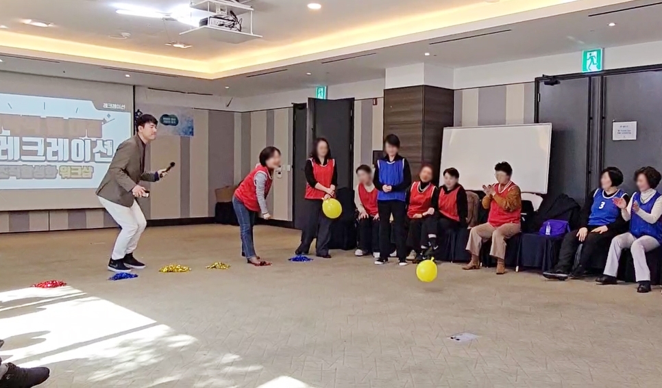 조직 구성원과 소통하는 레크레이션! 이론과 진단이 아닌 가벼운 게임과 함께 소통과 공감의 시간을 만들어 드립니다. 총 6개의 게임 (①몸풀기 게임 ②폭탄을 피해라 ③조별 네트워크 ④가라사데 ⑤음악 퀴즈 ⑥대동 놀이)을 통한 건강한 신체활동으로 부담 없이 가까워질 수 있는 기회를 만들어 보세요. 경쟁과 승부가 아닌 '대화'와 '소통'이 중요하도록 게임을 구성했습니다. 다가가기 어려웠던 부장님, 언젠가 서먹해진 나의 동기, 조금은 어색한 후배와의 관계를 이번 워크샵을 통해 한 발짝 먼저 다가가 보세요.
