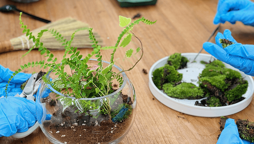 관엽식물 테라리움 만들기 시연 후 구상한 디자인으로 식물을 직접 식재 합니다.