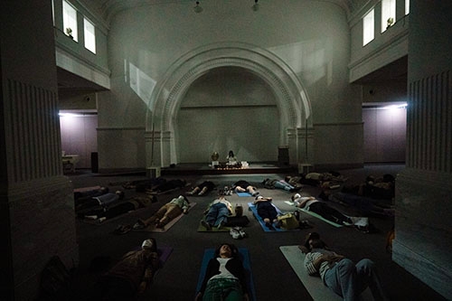 참여자가 편안하게 누워 명상할 수 있도록 충분한 공간 확보와 요가매트가 필요합니다. (대여가능-옵션)