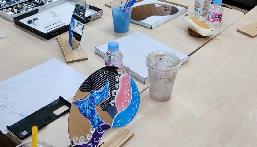 아크릴거울,받침대,물감(대여),붓(대여),파레트(대여),물통(대여),연필(대여),종이가 사용될 예정입니다.