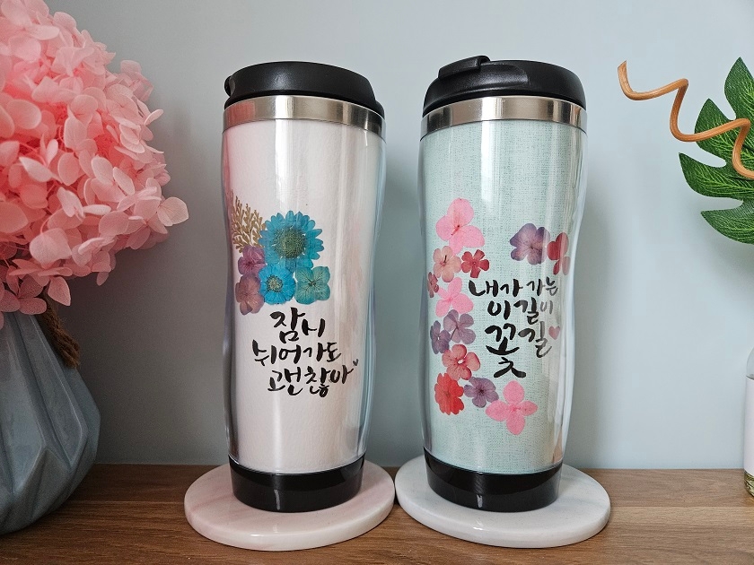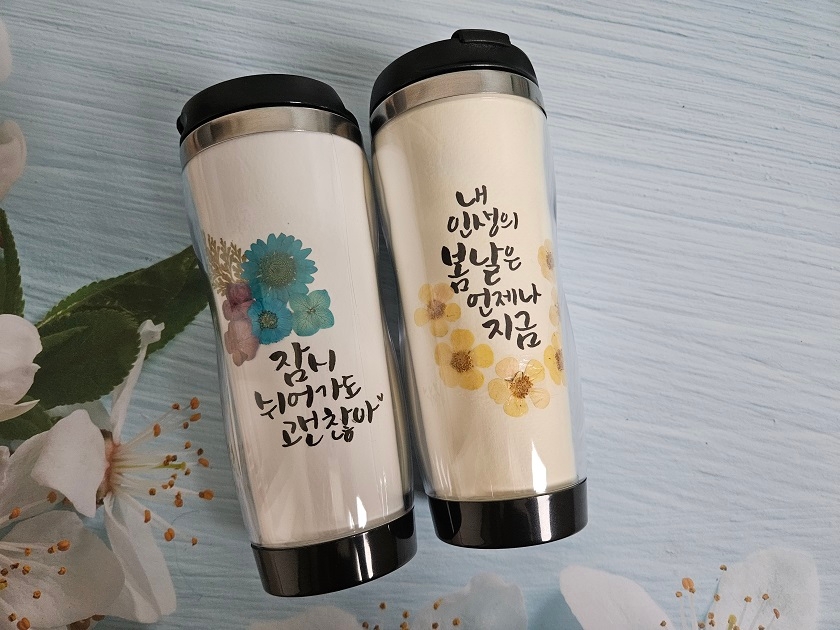 캘리그래피와 꽃을 사용하여 나만의 텀블러를 만들어 봅니다.