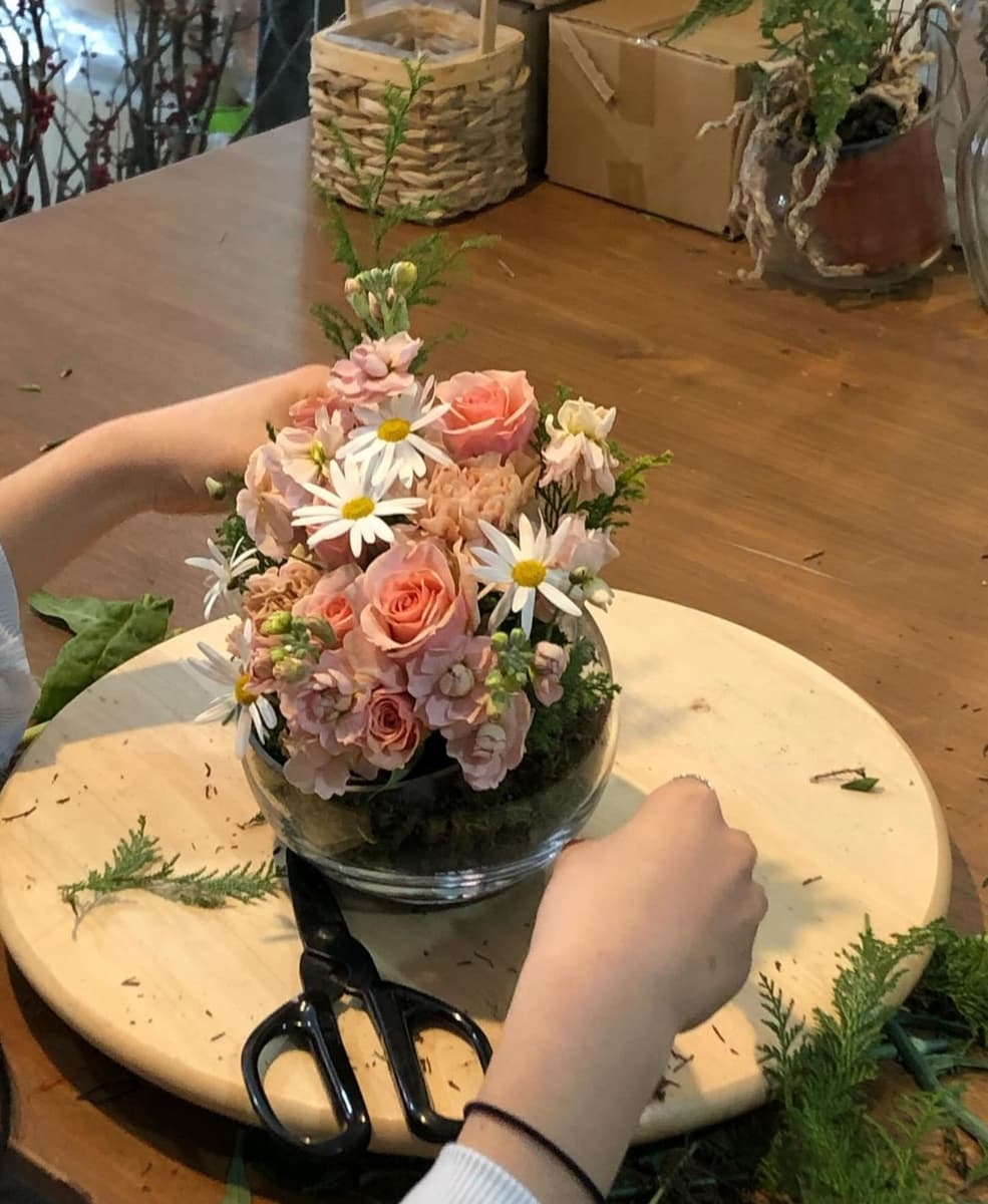 아름다운 반구형 유리볼에 다채롭고 싱그러운 꽃들을 플로랄폼에 정성스럽게 담아 제작하는 창작의 시간을 제공합니다. 이끼를 사용하여, 마치 정원에서 꽃들을 그대로 옮겨 놓은 듯한 아름다운 디자인을 연출합니다. 꽃이 시들면 유리볼에 악세서리 등을 넣어 또 다른 멋진 인테리어 소품으로 활용할 수 있습니다. 완성품은 특별하고 예쁜 투명 봉투에 담겨져 있어 손쉽게 가져갈 수 있어요. 플라워 아트의 아름다움과 실용성을 함께 느낄 수 있는 수업이에요. 함께 예술적인 순간을 만들어봐요!