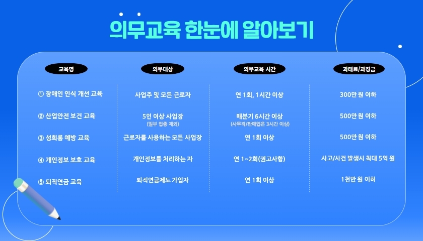 회사 운영을 위해 꼭 필요한 법정 의무&직무 교육을 진행합니다.