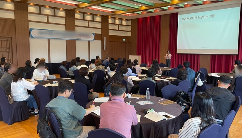 조직원이 바라는 리더는 어떤 사람일까요? 문제를 해결해주는 리더, 어려움을 공감해주는 리더, 마음을 잘 챙겨주는 리더? 예일대 교수 마크 브래킷은 말합니다. "조직원이 바라는 리더는 자기 감정을 잘 컨트롤하는 리더입니다. 도와주지 않아도 되고 공감해주지 않아도 되니, 자신의 감정을 잘 통제하길 바랍니다. 리더가 예민한 조직은 살얼음판이기 때문이지요. 그러나 리더는 외롭고 무거운 자리에 있습니다. 그래서 우리는 멘탈과 번아웃 관리를 해야 합니다." 멘탈 관리의 첫 번째 시작은 '자기인식'입니다. "나는 지금 어떤 상태에 놓여있는가?" 행복한 리더를 위한 번아웃 관리 워크샵에서는 임원, 중간 관리자의 자기 인식을 위한 두 가지 방식의 스트레스 검사, 그리고 소통 프로그램을 진행합니다. 나아가 건강한 자기 감정 관리를 위한 회복탄력성 강화 훈련, 조직원의 강점 찾기 체험, 화합을 위한 질책의 소통 방식, 마지막으로 행복한 리더를 위한 미소 훈련이 진행됩니다.