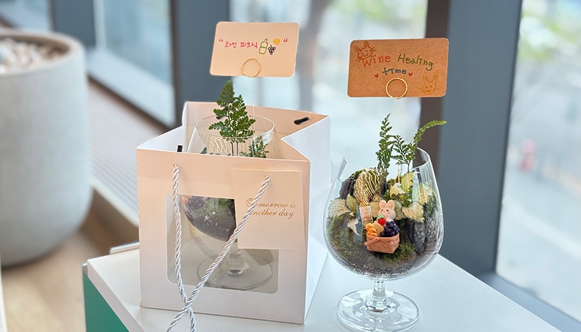 '나만의 와인 테라리움'은 와인을 감각적으로 체험하고, 그 경험을 테라리움에 감정으로 담아보는 힐링 워크샵입니다. 와인의 정서적 효과(스트레스 감소, 정서 안정 등)를 알아보고, 테이스팅을 통해 떠오르는 감정을 나만의 미니 정원인 테라리움으로 표현합니다. 참여자들은 테라리움 만들기 실습을 통해 창의력과 감수성을 발휘하고, 조별 나눔을 통해 소통하며 서로의 감정과 이야기를 공감하게 됩니다. 업무에 지친 마음을 와인과 식물로 다독이는 이 특별한 시간은 조직의 정서적 유대감을 높이고, 자기표현의 즐거움까지 더해줍니다.