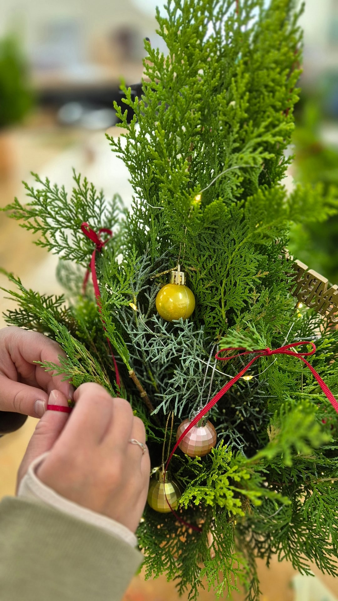 생화와 다양한 크리스마스 오너먼트로 나만의 미니 트리를 완성하는 감성 힐링 클래스