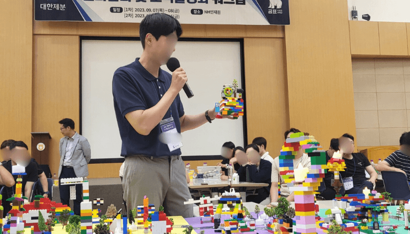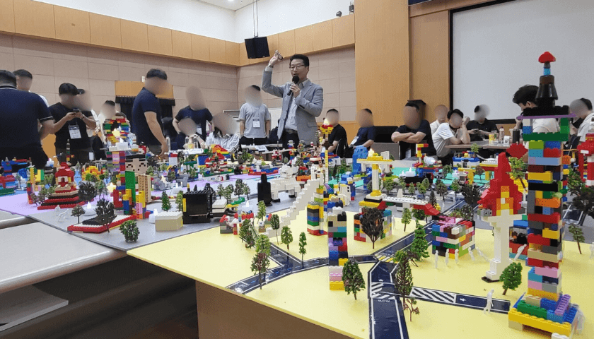 우리 회사의 핵심가치를 실무에 반영하는 프로그램, 비전 플랫폼 팀빌딩 비전 플랫폼은 조직이 지향하는 비전과 핵심가치를 LEGO 블럭으로 구현해 보는 비전 내재화 프로그램입니다. 조별로 LEGO 블럭을 활용해 도시를 건설하고, 회사의 핵심가치가 실무와 어떻게 연결되는지 체득하며, 원활한 협업으로 비전 플랫폼을 완성합니다. 과정의 마지막에는 각자의 핵심가치 형상물을 공유하고 개인별 비전 선언을 통해 개인의 업무와 조직의 목표를 일치시킵니다. 경건하고 의미 있는 마무리로, 조직의 비전·가치에 대한 몰입과 성취감을 동시에 얻을 수 있습니다.