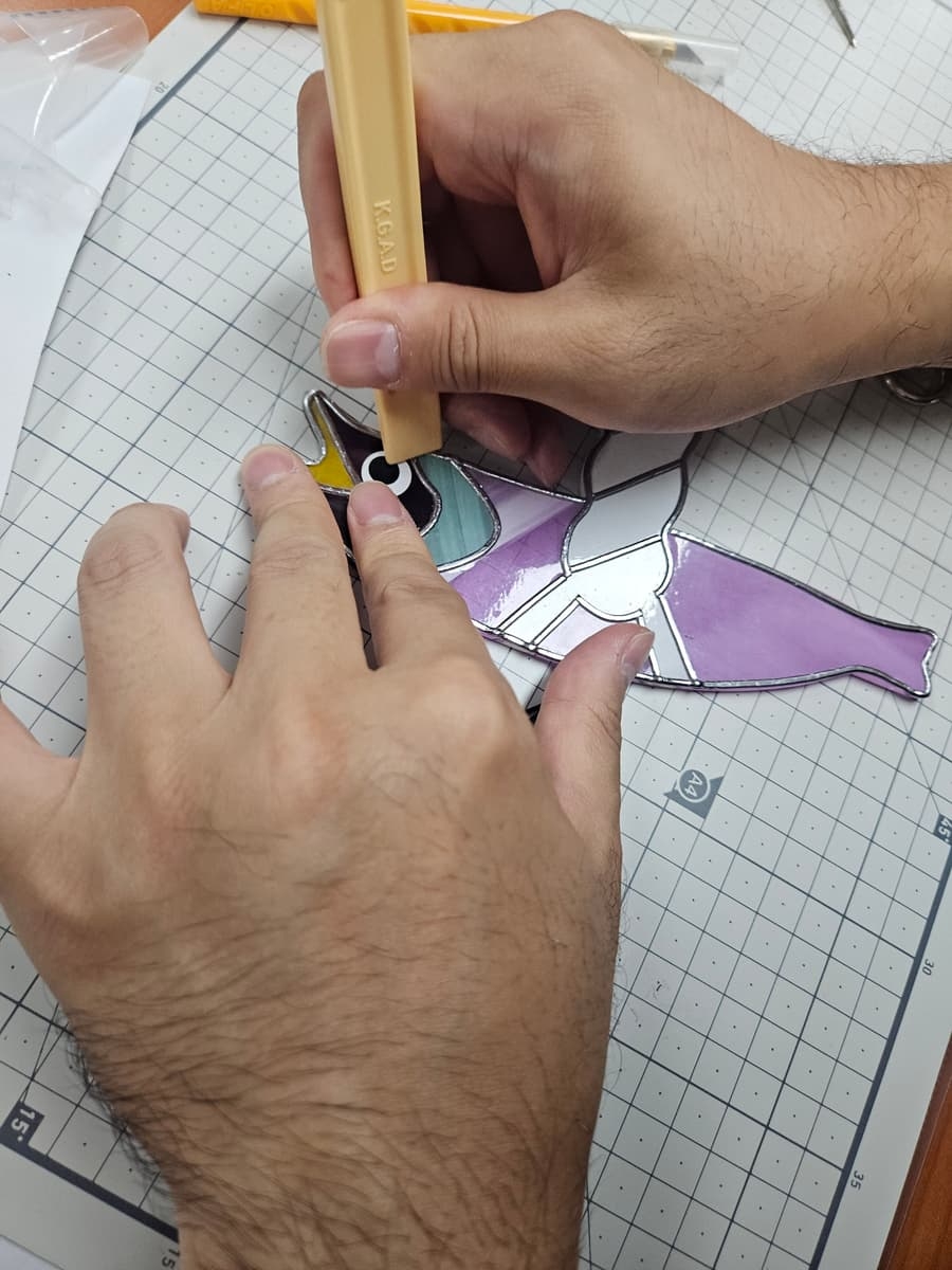 글라스아트는 유럽에서 수입하는 유리결느낌의 특수지와 무른 납선을 이용해 초보자도 2시간 이내로 근사하고 완성도 높은 작품을 만들 수 있는 안전한 공예입니다. 단순한 장식물이 아닌 액운을 막고 복을 불러들인다는 의미가 담긴 액막이명태도어벨을 만들며 내 안의 자존감과 자신감을 충전하는 시간 동료분들과의 소통의 시간을 선물합니다.