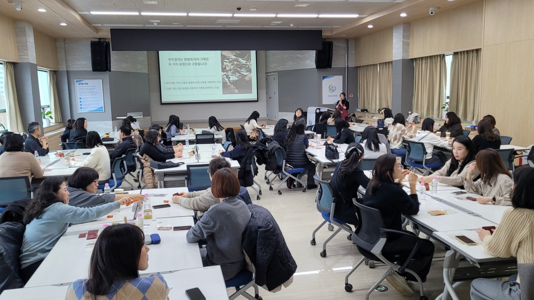 빔프로젝터·스크린 준비 / 5~6인 테이블 세팅 / 주차 공간
