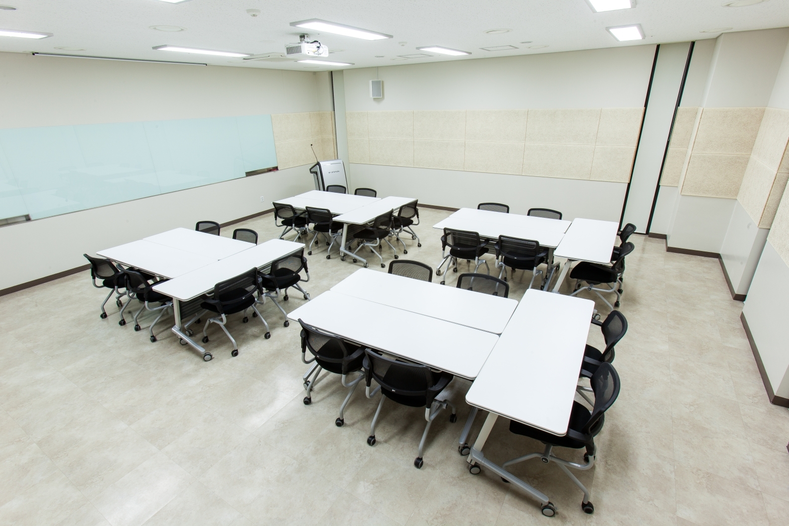 · 4개실 · 레이저프로젝터 · 전자교탁/무선 핸드마이크 · 전동스크린/현수막 · 목모보드 게시판, 메쉬의자 ※ 최소 이용금액 기준