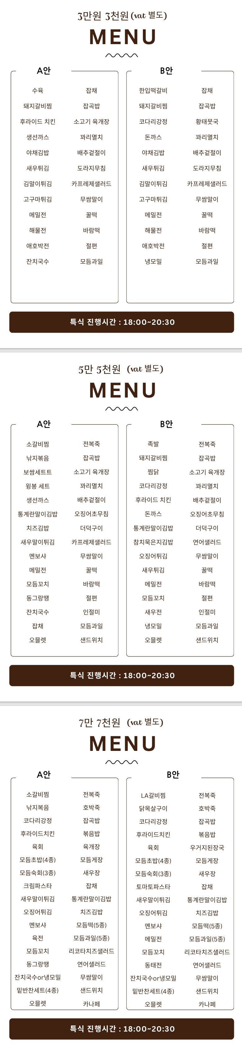 삽겹살/목살 인당 250g 수제소세지 호박 버섯, 밥,국, 문어숙회,두부김치,가오리 무침, 코다리 조림 상치,마늘,고추,파무침,오이무침, 더덕무침,명이나물,깻잎