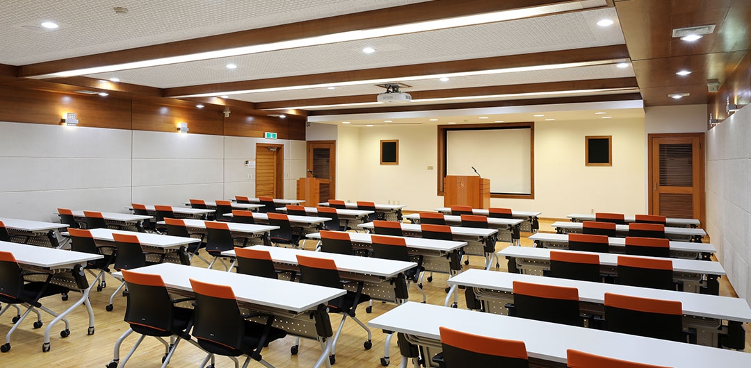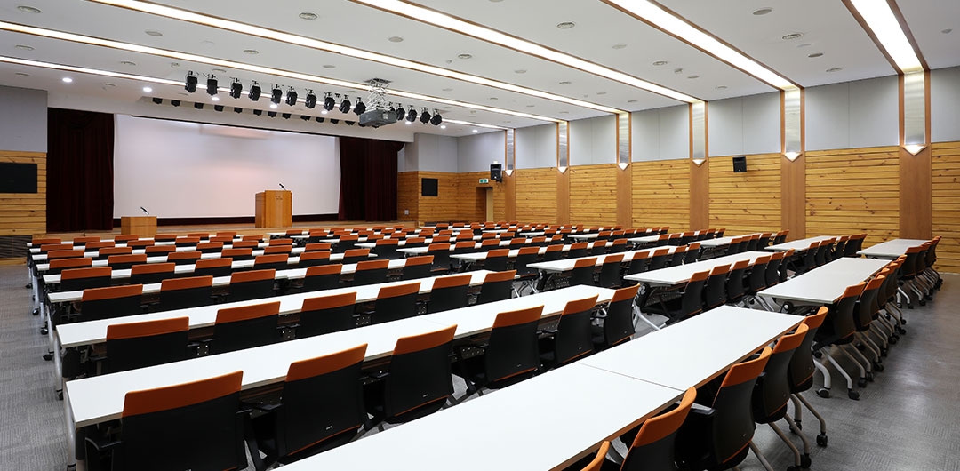 [강의실정보] - 면적: 86.2평(275㎡) - 강의실 수: 총 1실 - 기준 인원: 100명 - 최대 수용 인원: 200명 *인원추가: 가능(별도 추가요금 발생)