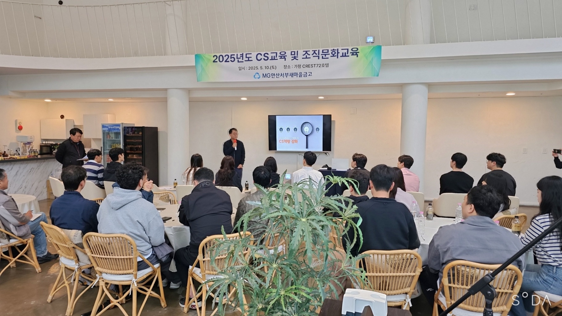 - 단체 워크샵 활용 가능 - 프론트 앞 세미나실 활용 - 수용 가능 인원: 60명 - 이용 가능 시간: 09:00 ~ 22:00 - 빔프로젝터 O / 대형 모니터 O