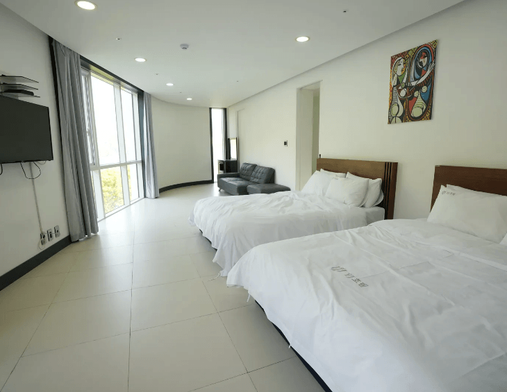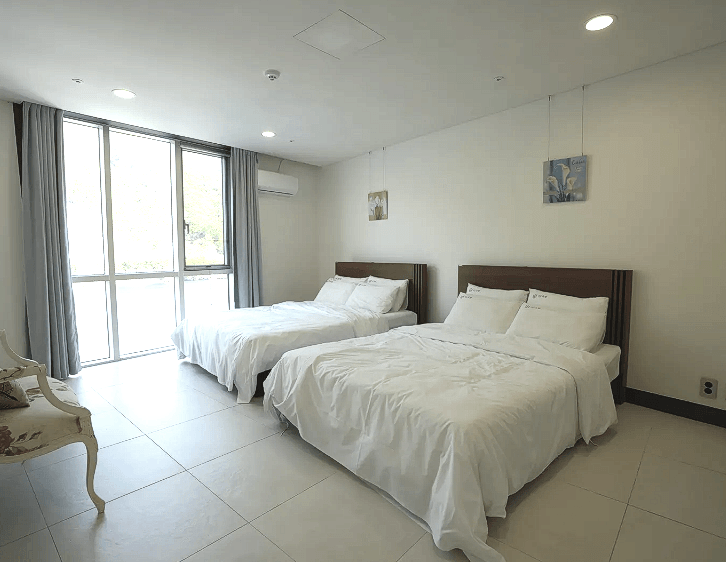 [객실정보] - 구성: 트윈베드 3개 - 객실: 2개 [이용 인원] - 객실 기준 인원: 6명 (최대 8명) - 총 수용 인원: 16명 *인원추가 가능 (사전 협의 필수)