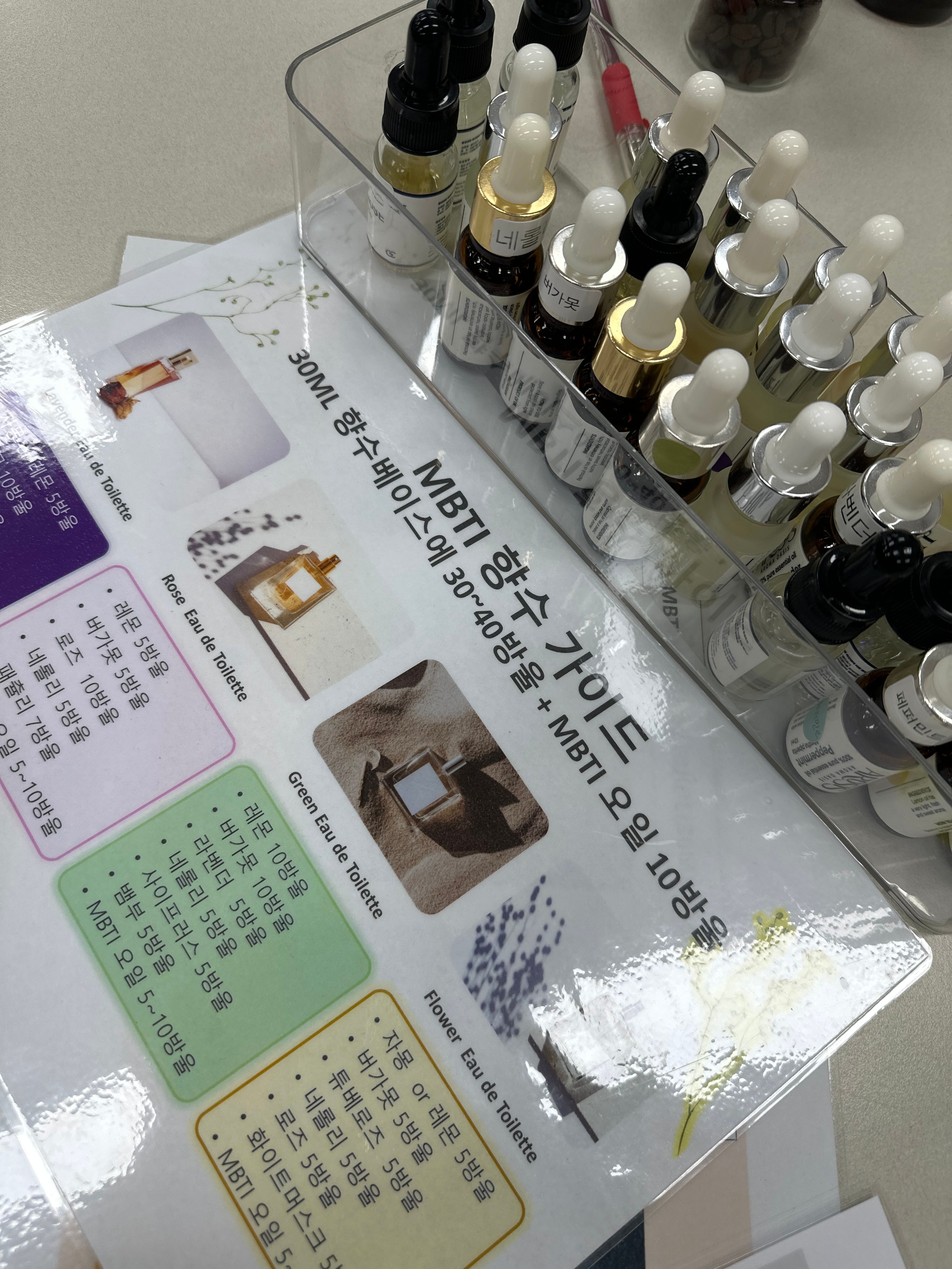 여러가지 향수를 섞어서 맡아보고 MBTI까지 넣어서 만들었는데 신기했습니다. 다른 분들께도 추천하고 싶습니다.